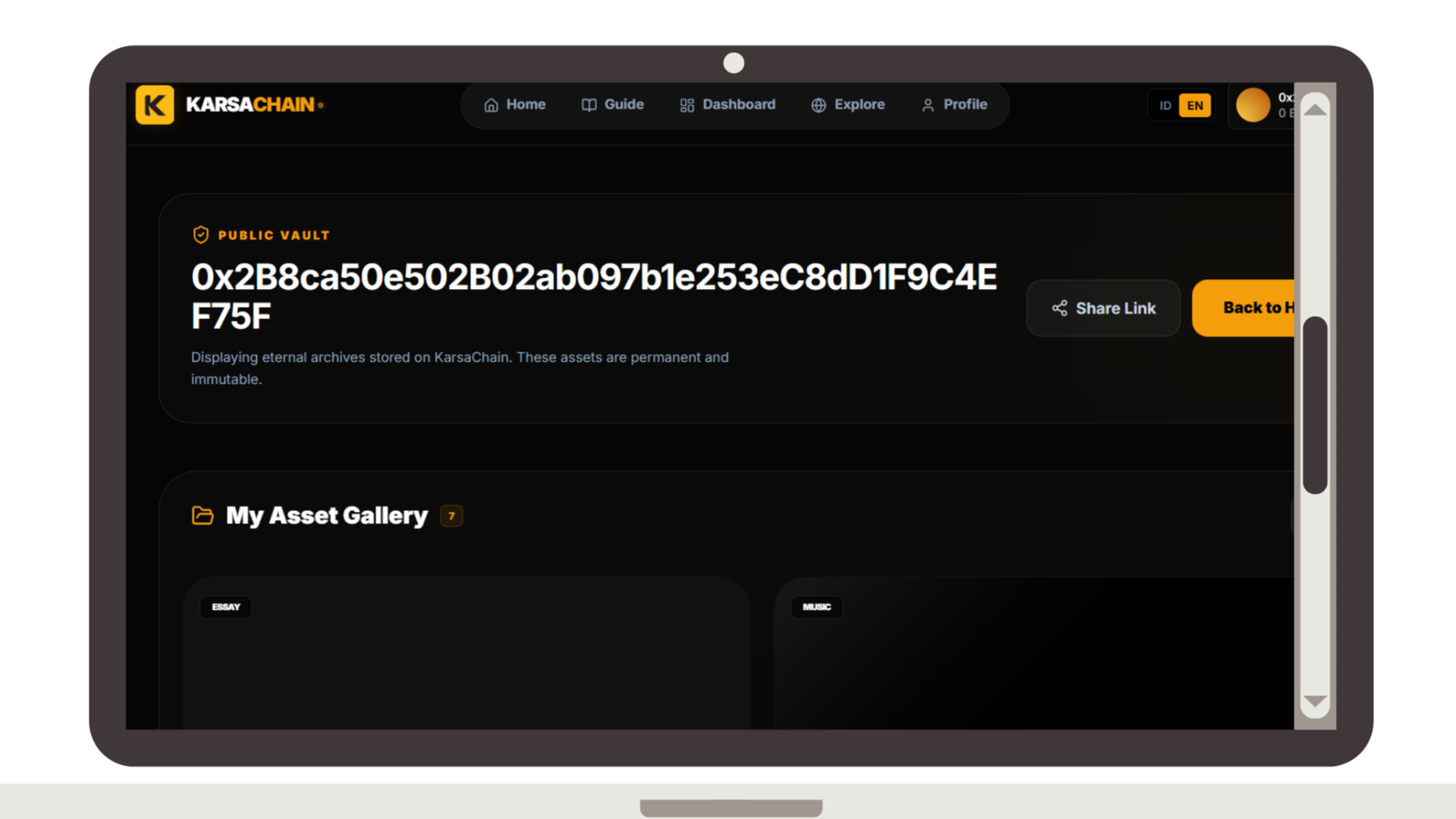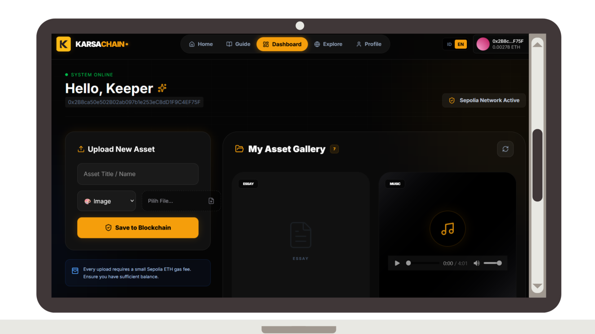 Project Overview: KarsaChain is a decentralized application (DApp) designed to provide permanent, tamper-proof storage for digital assets. By leveraging blockchain technology and decentralized protocols, it ensures that your most important records remain accessible and unverifiable, even if centralized servers fail.