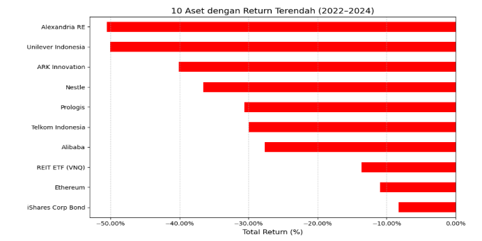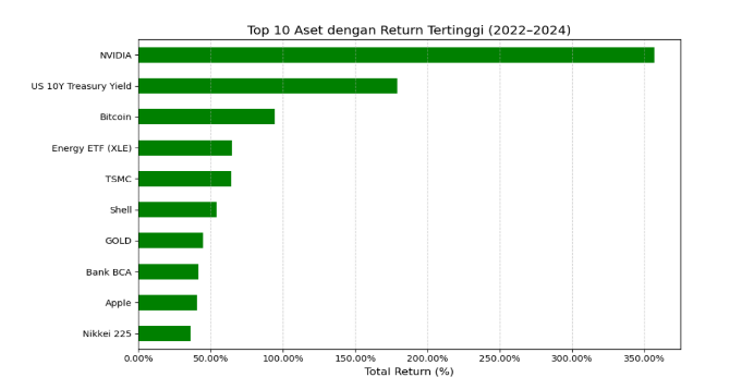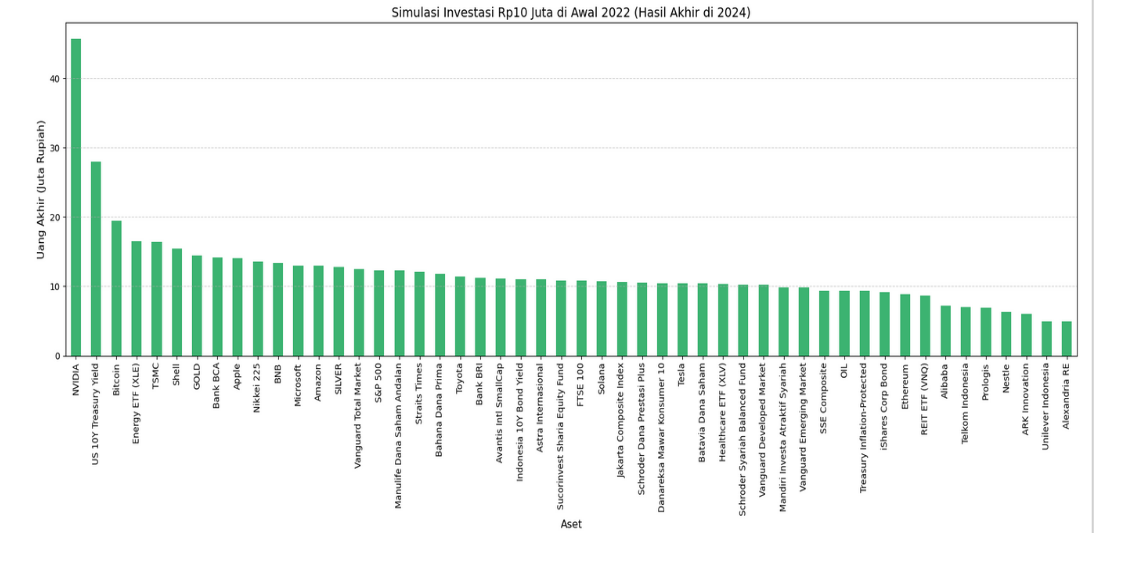 This project explores the performance of 50+ investment instruments across multiple asset classes — including U.S. stocks, Indonesian stocks, global indices, top cryptocurrencies, mutual funds, bonds, and commodities. All datasets were collected through automated Python web scraping pipelines using Requests, BeautifulSoup, and various financial APIs.